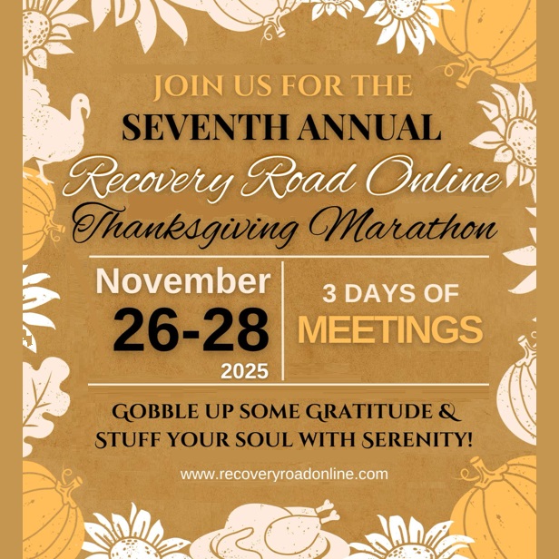 RECOVERY ROAD – *BREAKFAST CLUB* MORNING INSPIRATION Starts in 5 hrs, 14 mins 8:00am EST to 9:00am EST ZOOM ID: 430092101 PASSWORD: 1234 LOCATION / TIME: USA, Saturday 8:00am See https://recoveryroadonline.com